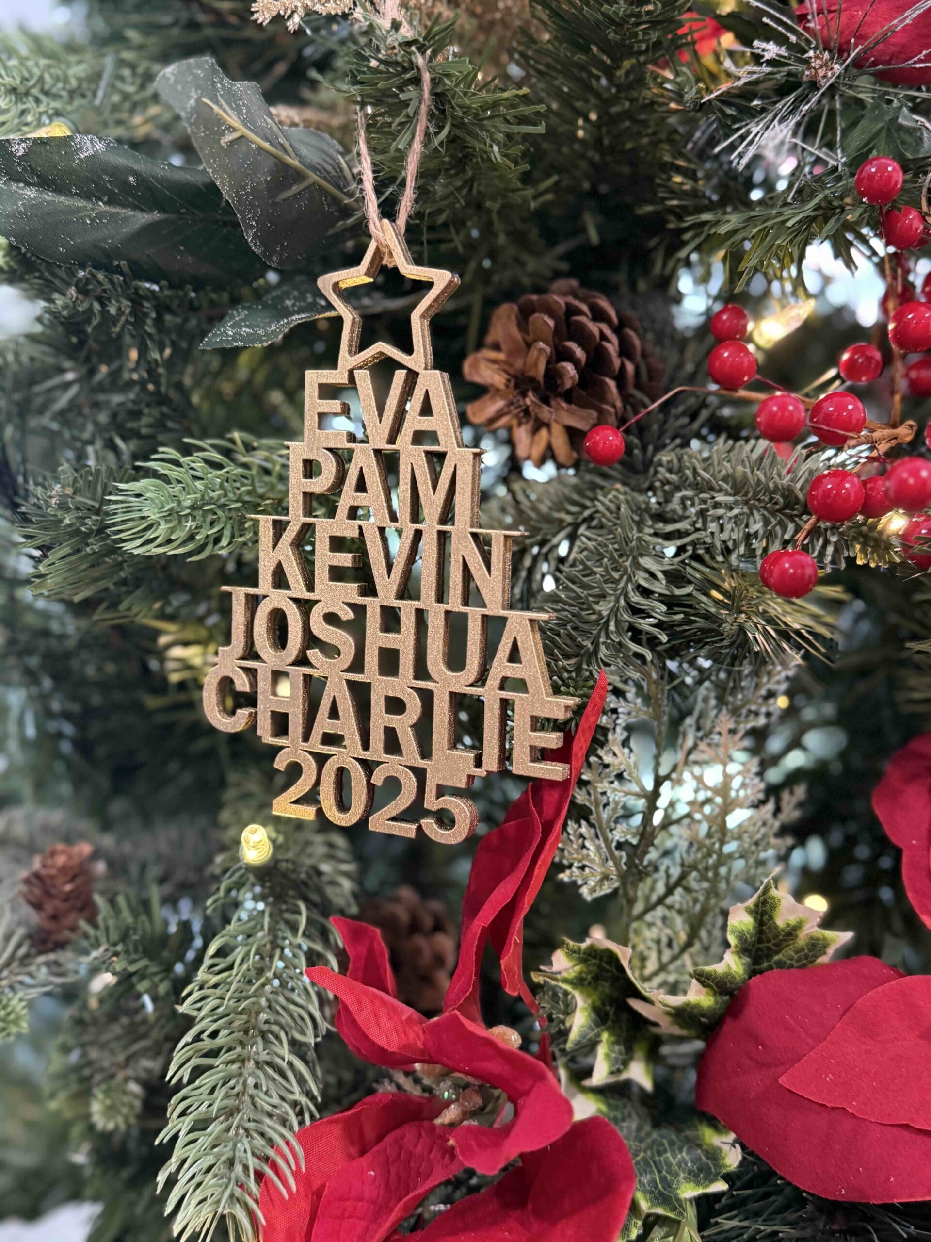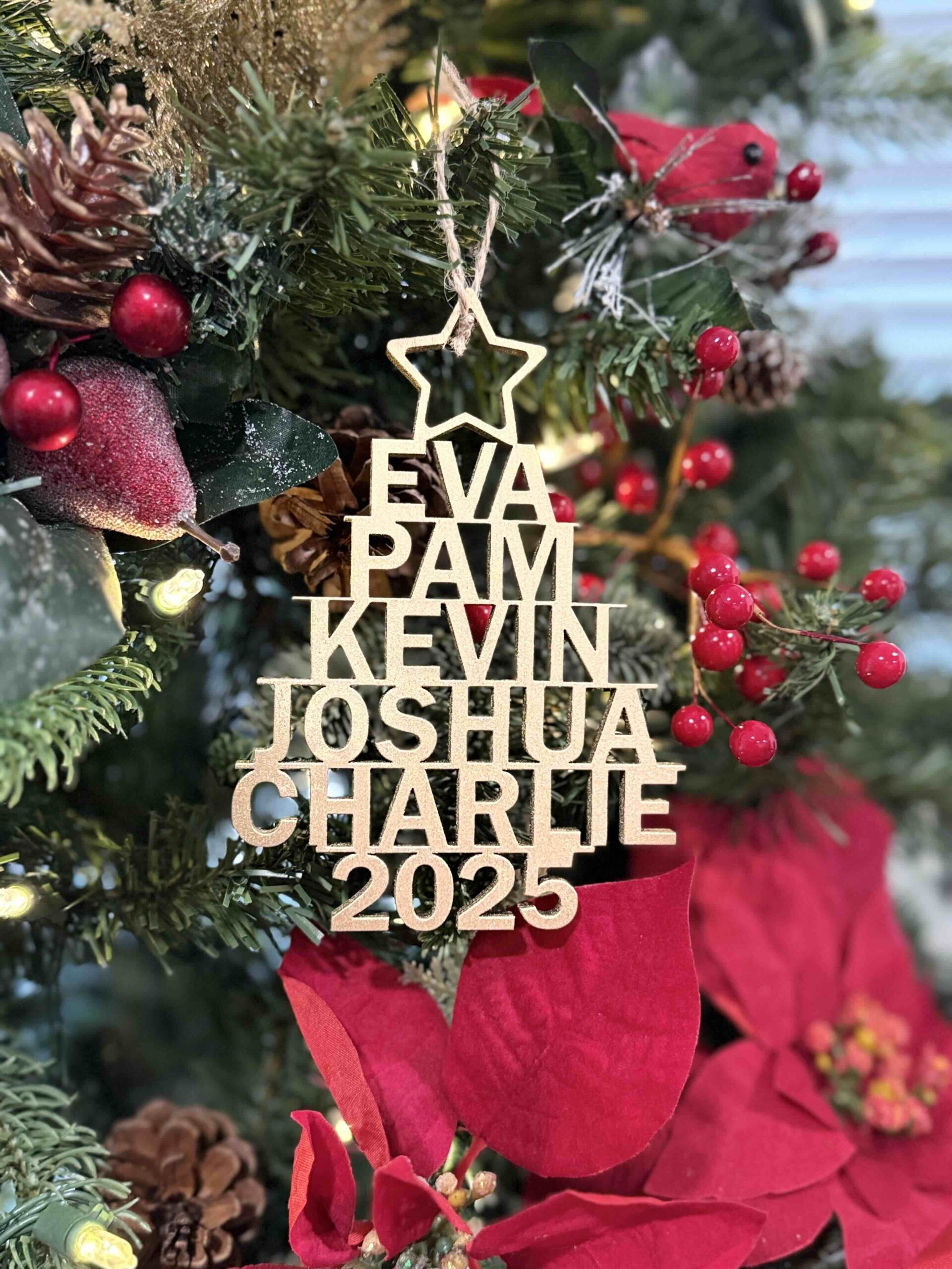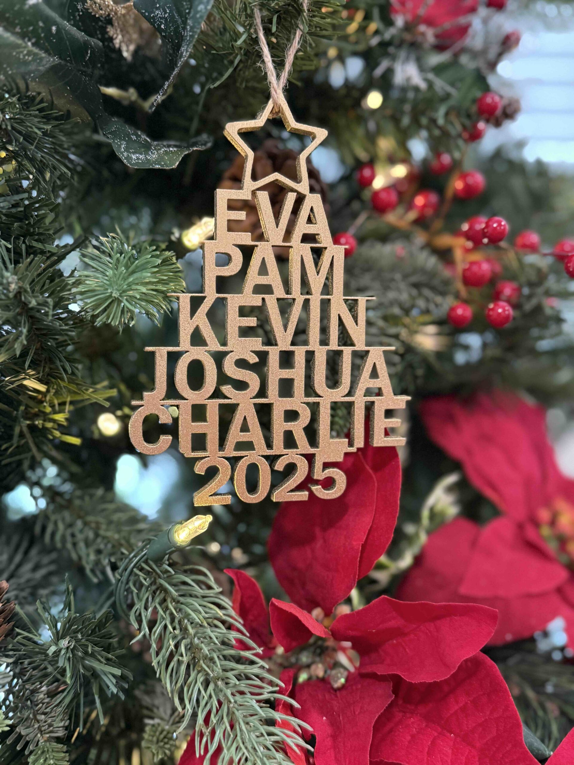 Custom Names Laser Cut Tree Ornament Painted